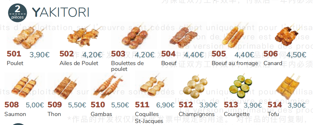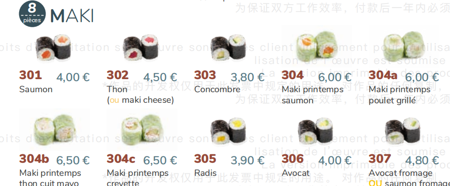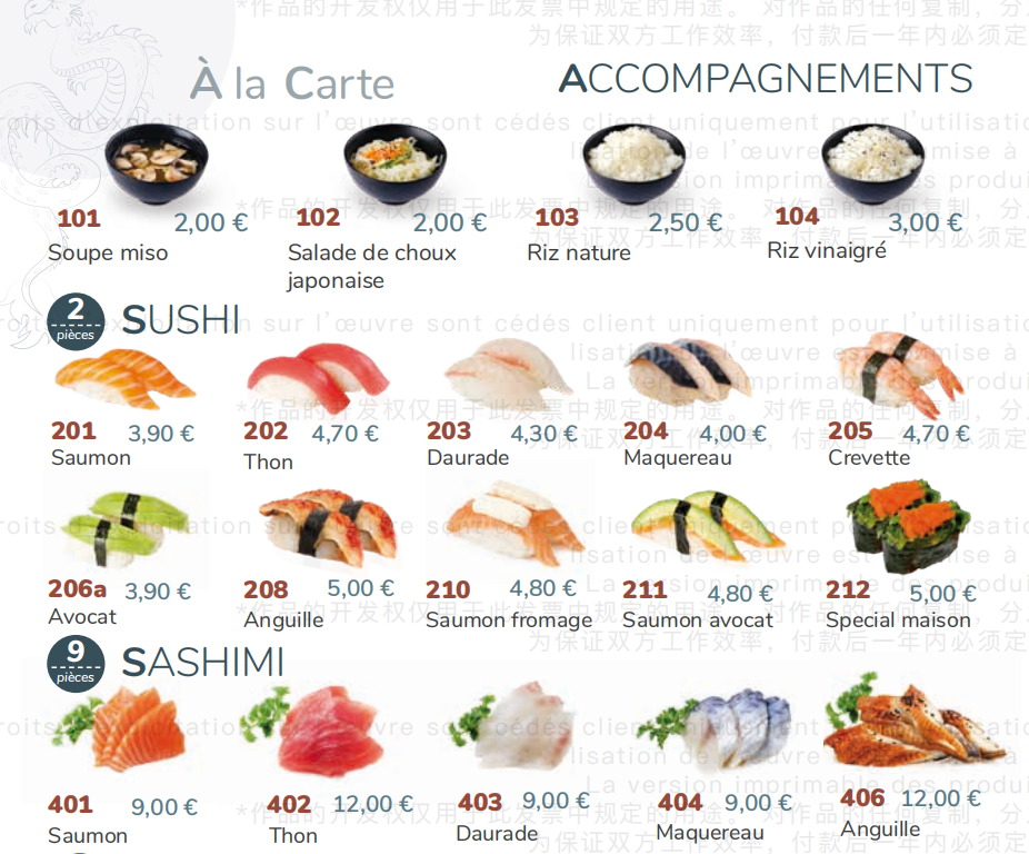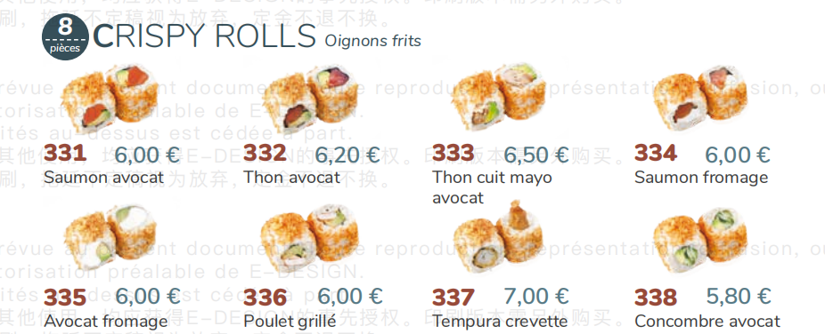 | E7 | Tempura crevette (4 pièces) | 6,00€ |